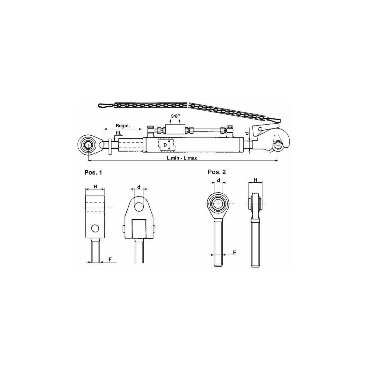 Prodotto | Braccio terzo punto a regolazione idraulica con gancio rapido completo di valvola di blocco pilotata |