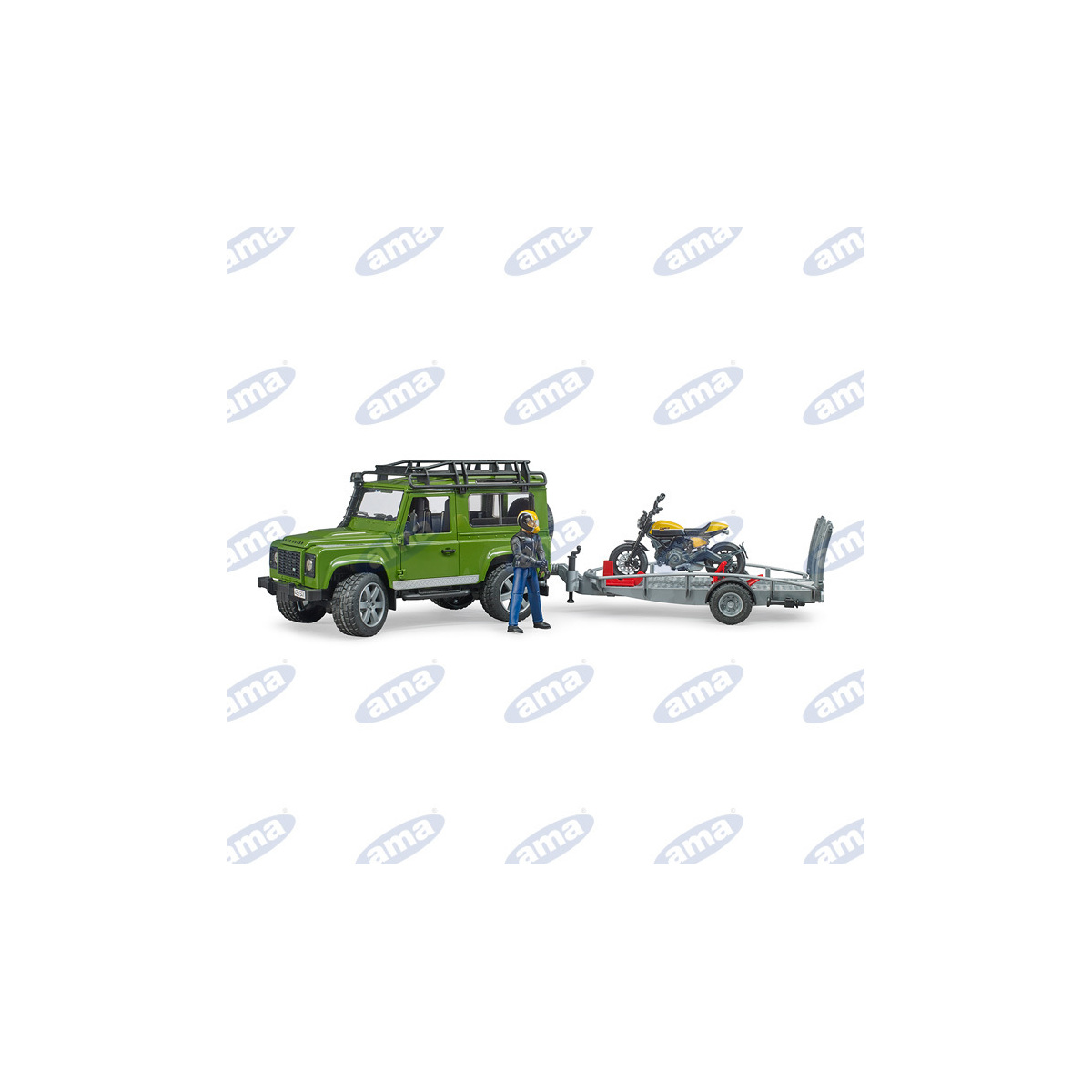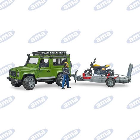 Bruder Land Rover Defender 555 x 150 x 153 mm+ rimorchio e moto Ducati con conducente 145 x 62 x 85 mm