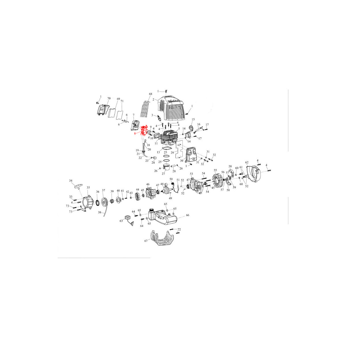 Carburatore x mototrivella 6118900 c.esploso n. 8 - in rosso -