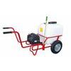 Carrello 120Lt battery con 10mt tubo e lancia, pompa a membrana 12V 4bar l/min 3,8 batteria 12V7,2A al piombo compresa, carica batteria compreso, carrello a telaio quadro di colore rosso