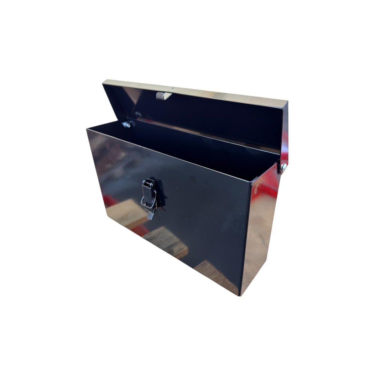 - Cassetta porta-attrezzi in lamiera piegata, saldata robusta verniciata nero lucido per trattori.