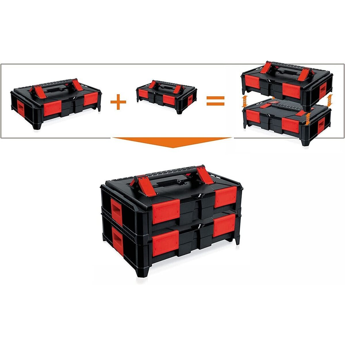 - CASSETTA PROFESSIONALE MODULARE IN ABS 464x335x142 CON AGGANCIO LATERALE BREVETTATO - L'IMPILAGGIO LATERALE CONSENTE DI SOVRAPPORRE UNA CASSETTA SULL' ALTRA CREANDO UN "SISTEMA"