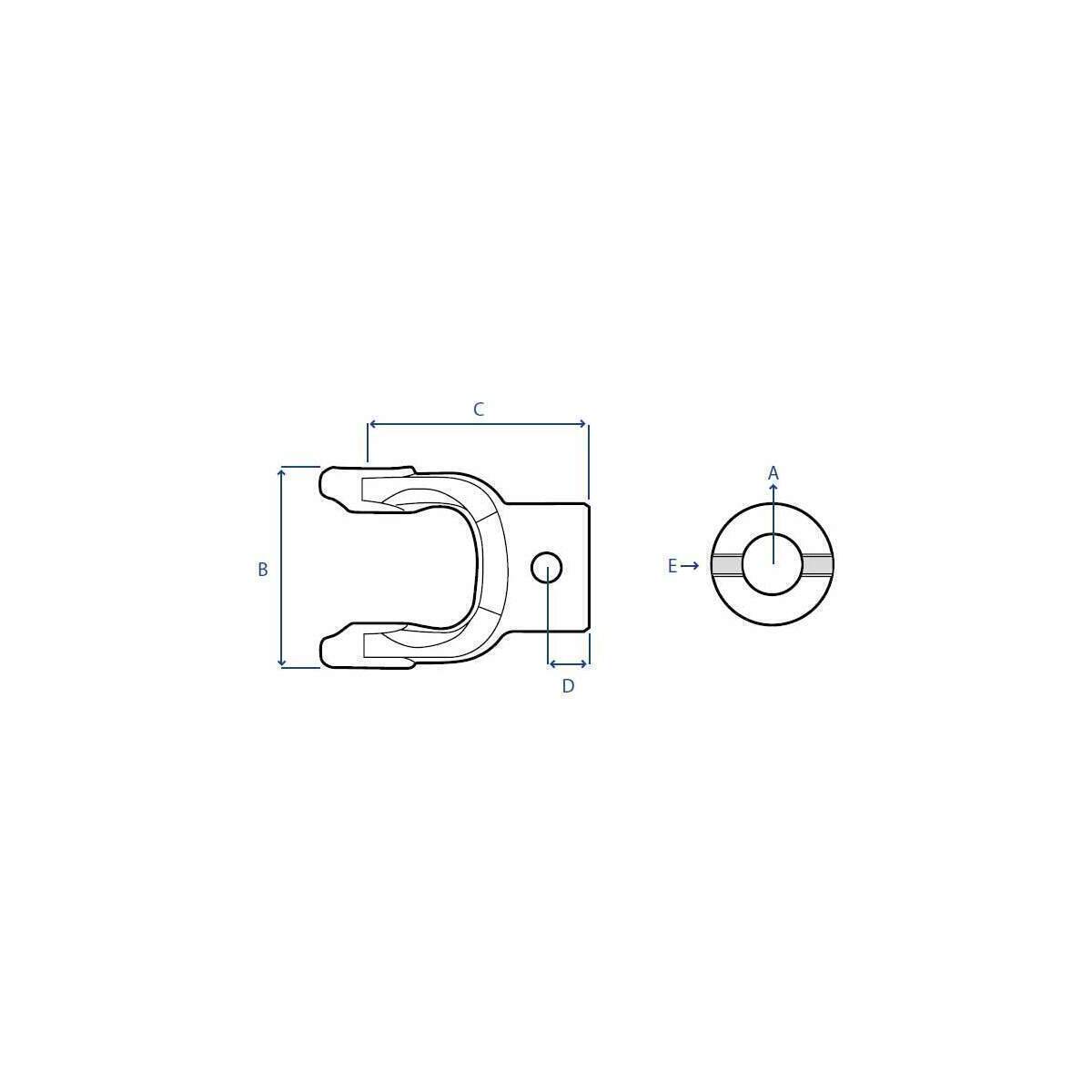 Forcella con foro liscio e foro spina T20 foro 30 mm foro spina 10