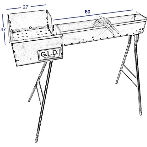 Fornacella canaletta barbecue per arrosticini 60 cm in ferro con testa 27x37 cm piedi staccabili originale Abruzzese