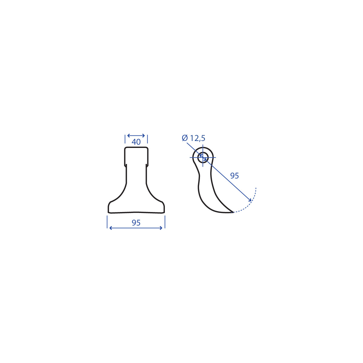 - Raggio (R) : 95 mm.