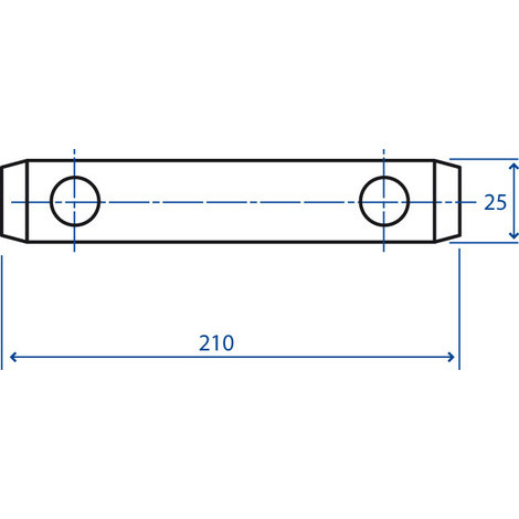 Perno per terzo punto lunghezza utile 166 mm diametro 25 mm con due fori diametro 12 mm