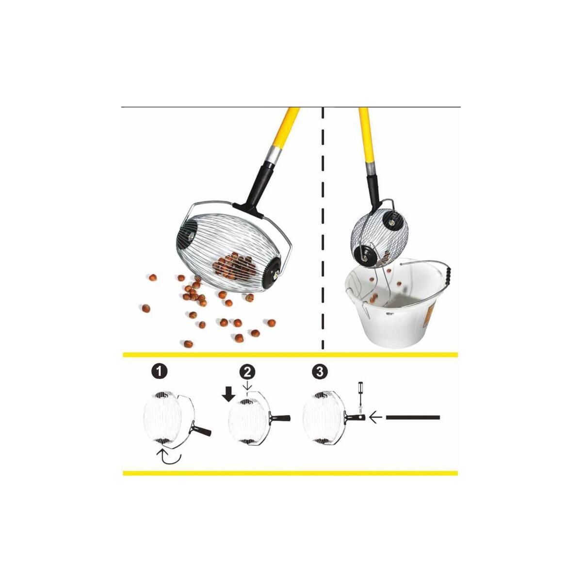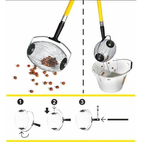 Raccoglitore manuale Rotoracc per oggetti tondeggianti diametro da 8 a 15. La gabbia di fili di acciaio rotola sul terreno inglobando cià ² che incontra al suo passaggio.