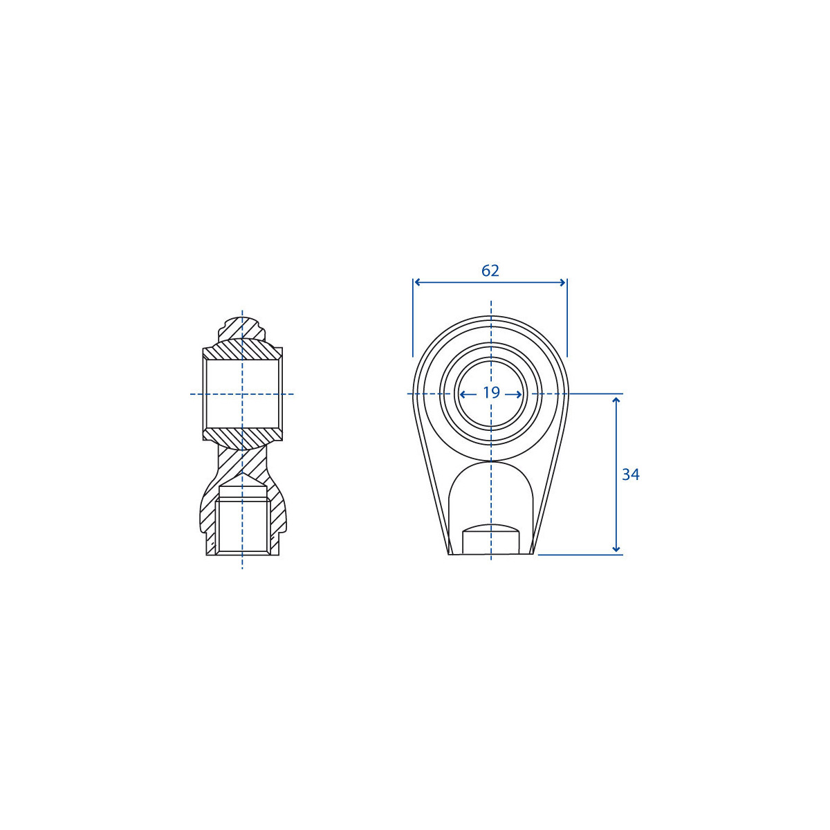 Supporto rotula sferica per terzi punti Categoria I Diametro 19 mm altezza rotula 44 mm