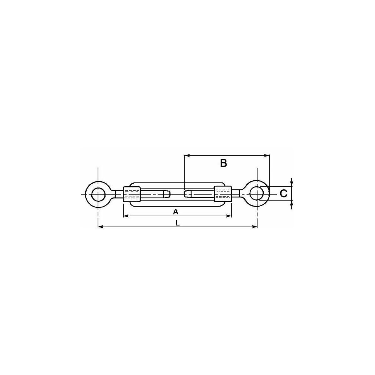 Tenditore a due occhi in ghisa lunghezza 187 - 289 mm filetto M12 diametro foro 17 mm